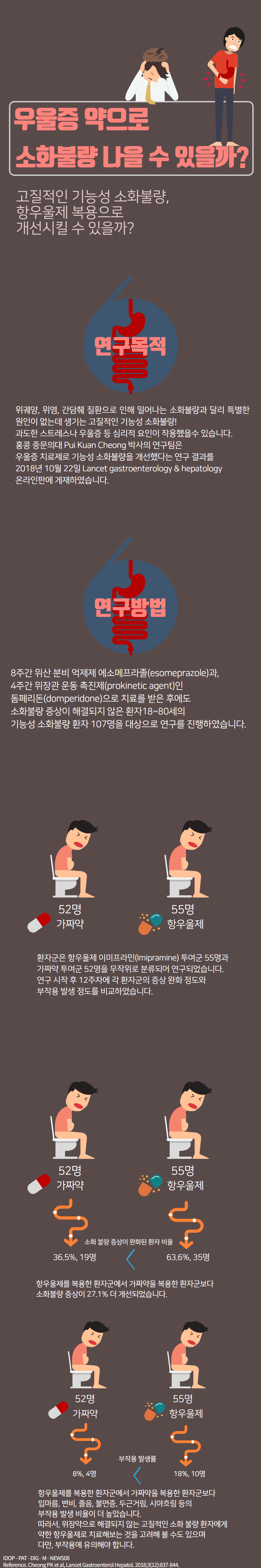 카드뉴스 상세 [카드뉴스] 우울증 약으로 소화불량 나을 수 있을까? 진료과목 : 내과 , 정신건강의학과 , 가정의학과 연관 질환백과 바로가기 기능성 소화불량기능성 위장장애소화불량우울우울증