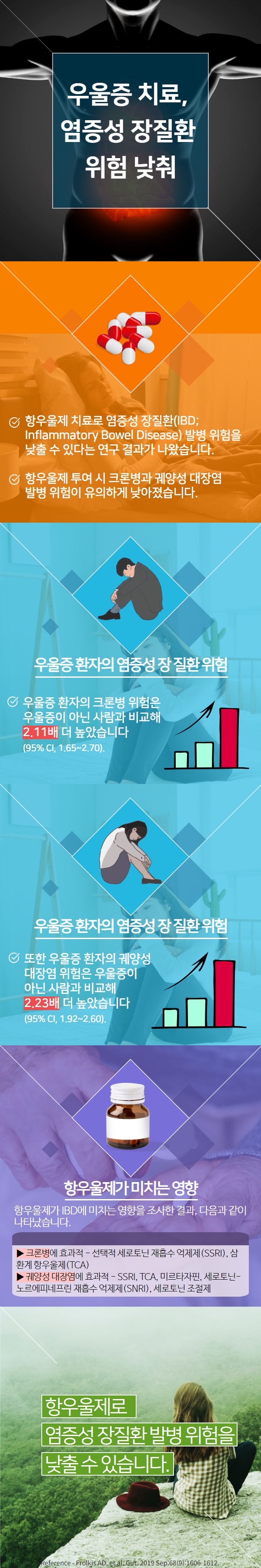 [카드뉴스] 우울증 치료, 염증성 장 질환 위험 낮춰