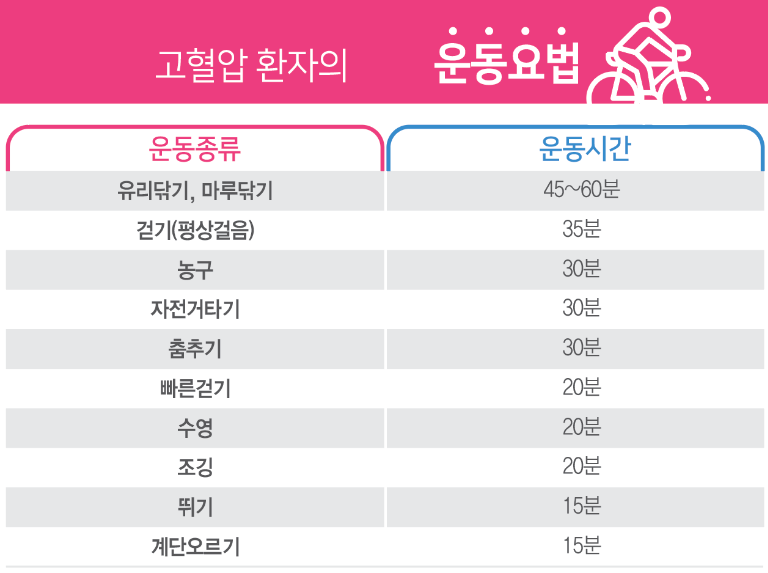 고혈압 환자에서 적절한 운동이 필요합니다.